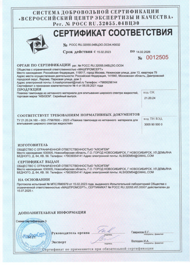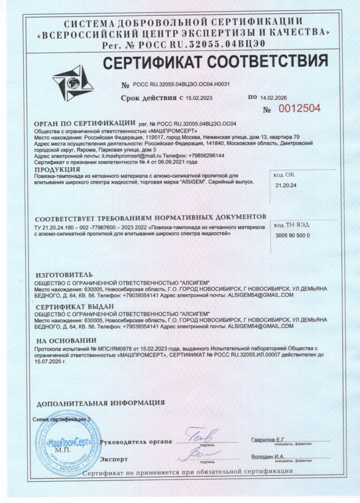 Гемостатики ALSIGEM 3-го поколения на основе каолина – Купить в Алматы